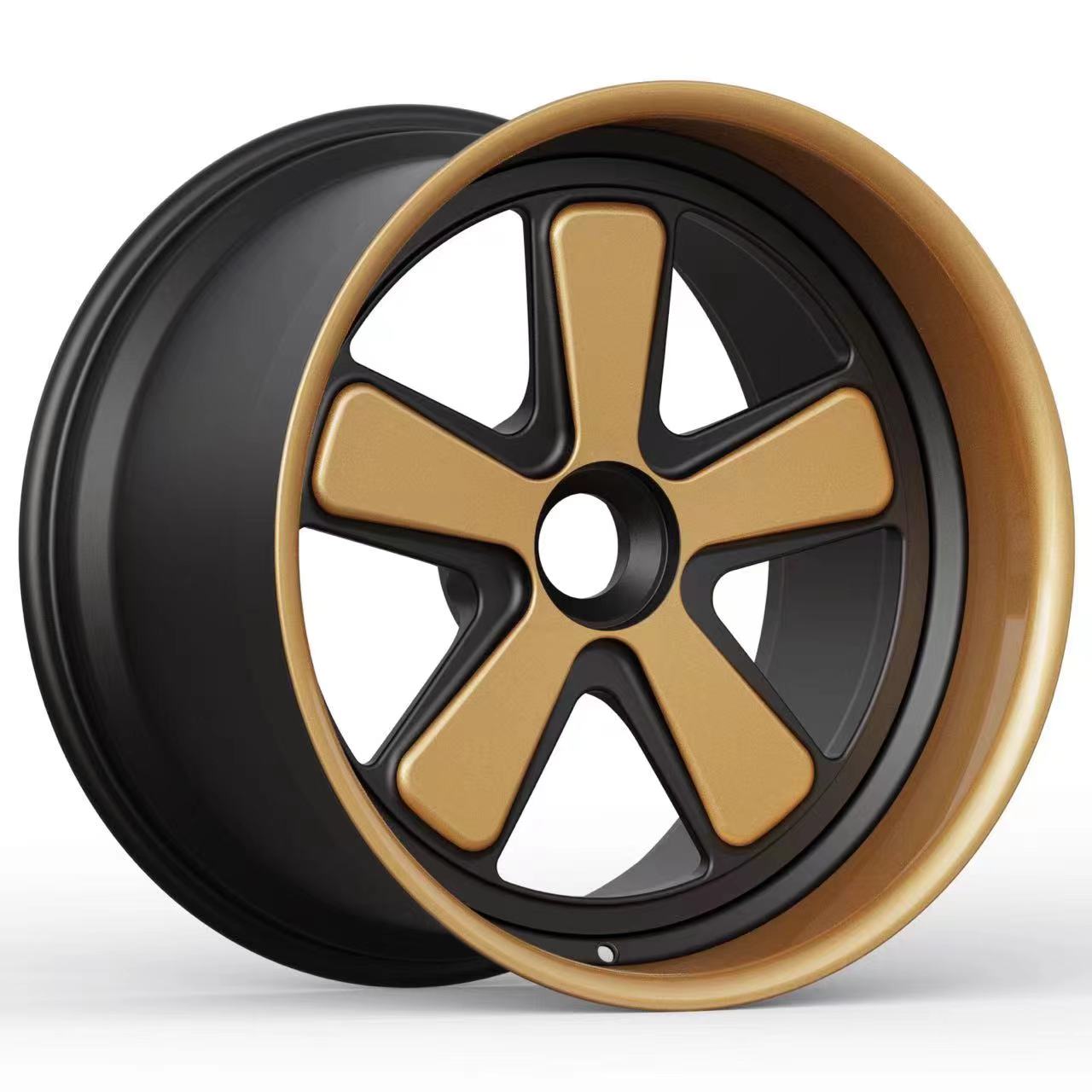 We offer both 5-lug fitment with signature center lock style hubcaps and original center lock fitment, with the entire system—including the hubcaps—constructed from the same forged aluminum material as the wheels for maximum consistency and performance.