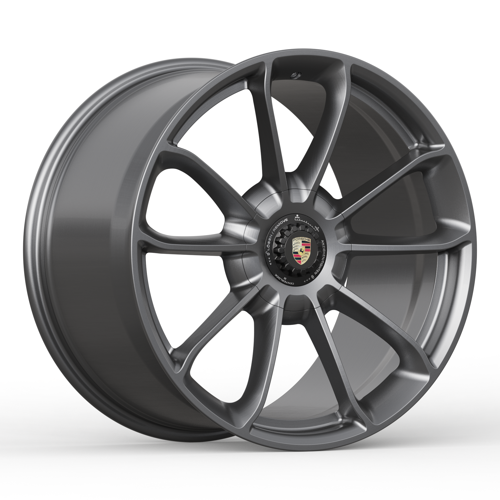 Introducing the GTRS – P.GT3RS 09912, inspired by the Porsche 991.2 GT3RS center lock wheels. Featuring 5-lug fitment with an option for center lock style hubcaps, and a version with real center lock fitment, this wheel combines versatility, performance, and style for all Porsche models. A perfect fusion of precision and design
