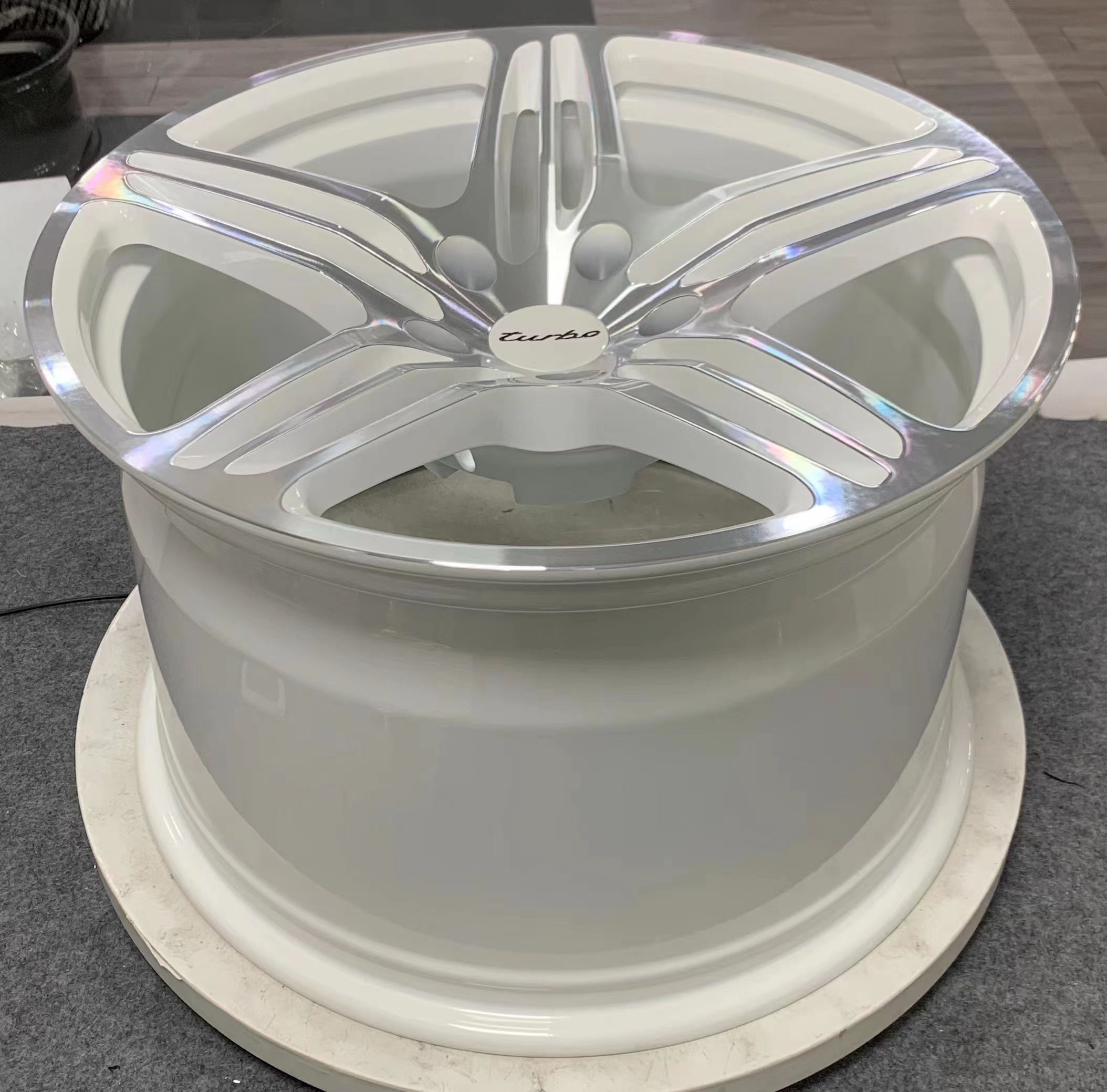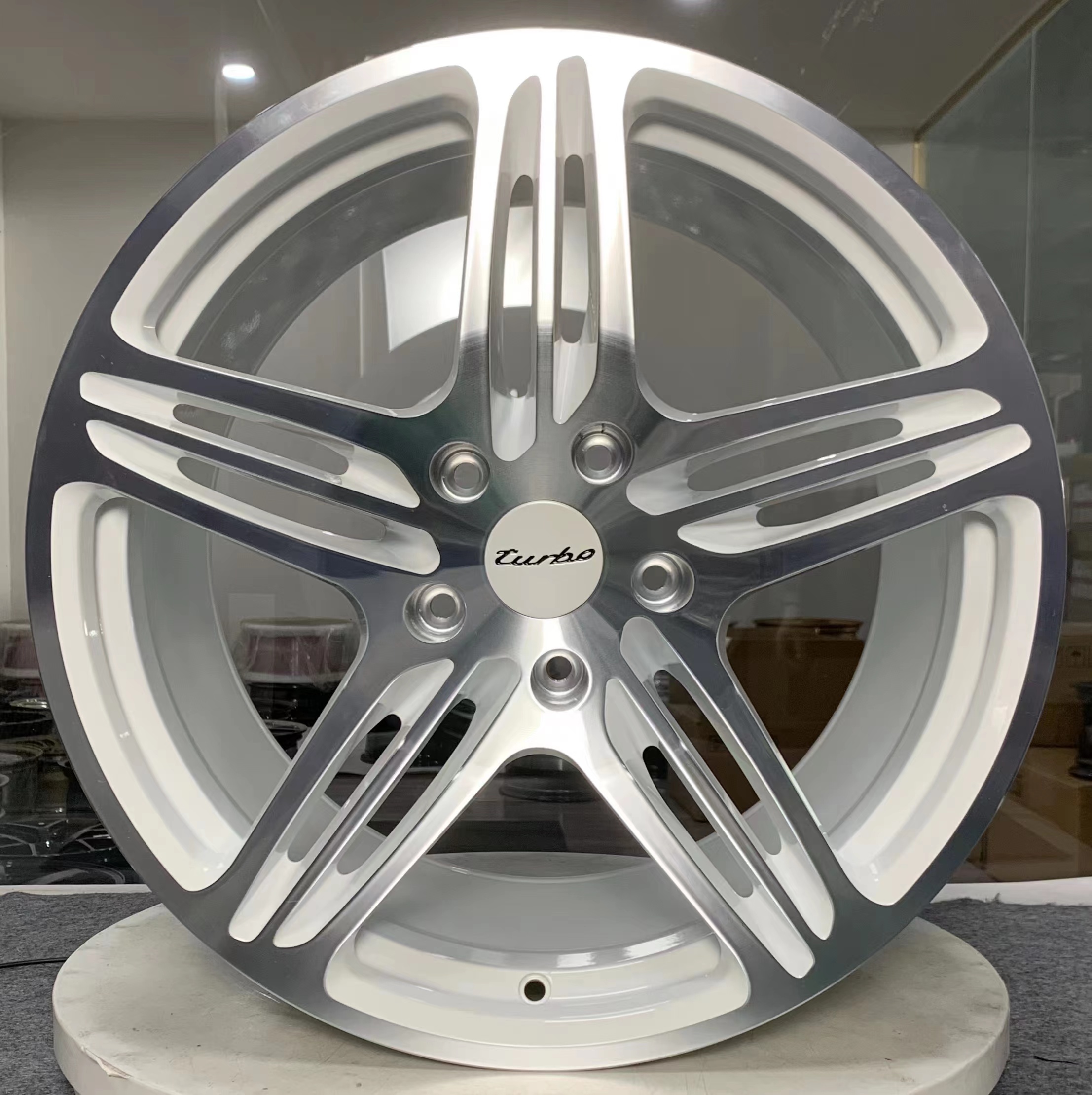 We offer both 5-lug fitment with signature center lock style hubcaps and original center lock fitment, with the entire system—including the hubcaps—constructed from the same forged aluminum material as the wheels for maximum consistency and performance.